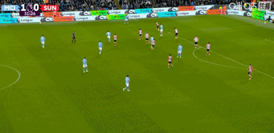 第30分钟,曼城左路压上,多库带球到禁区边上回传,谢尔基角上接球策应内切后再回传中路,迪亚斯禁区弧顶前接球调整2步突然超远距离大力抽射,皮球直挂球门左上死角,曼城1:0首开纪录。仅仅4分钟后,曼城右侧角球机会,福操刀主罚兜传门前,格瓦迪奥尔小禁区内一步高高跃起强力头槌攻门,皮球应声入网,曼城4分钟连进2球2:0领先。易边再战曼城依然稳稳压制桑德兰,第51分钟,曼城左路快速反击,多库带球突入禁区摆脱防守后右脚大力兜射,BOOM的一声皮球被远端门柱挡出。